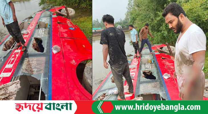 নিয়ন্ত্রণ হারিয়ে বাস খালে, গণঅধিকার পরিষদের নেতাসহ আহত ১৫
